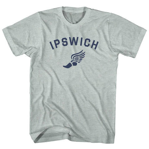 Product Story: Ipswich Running Track Winged Foot Adult Tri-Blend T-shirtProduct Description: Ipswich Running Track Winged Foot Adult Tri-Blend T-shirt Tri-Blend (Polyester, Rayon, Cotton) Buttery Smooth Soft Material Medium Weight Tee Soft Hand Print