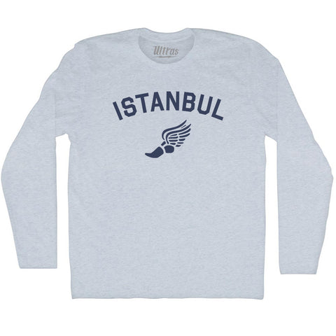 Product Story: Istanbul Running Track Winged Foot Adult Tri-Blend Long Sleeve T-shirtProduct Description: Istanbul Running Track Winged Foot Adult Tri-Blend Long Sleeve T-shirt Tri-Blend (Polyester, Rayon, Cotton) Buttery Smooth Soft Material Medium Weight Tee Soft Hand Print