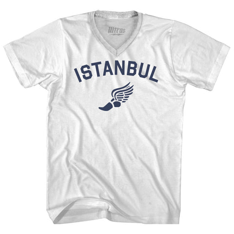 Product Story: Istanbul Running Track Winged Foot Adult Cotton V-neck T-shirtProduct Description: Istanbul Running Track Winged Foot Adult Cotton V-neck T-shirt Cotton Buttery Smooth Soft Material Medium Weight Tee Soft Hand Print