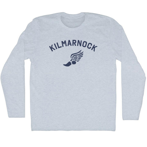 Product Story: Kilmarnock Running Track Winged Foot Adult Tri-Blend Long Sleeve T-shirtProduct Description: Kilmarnock Running Track Winged Foot Adult Tri-Blend Long Sleeve T-shirt Tri-Blend (Polyester, Rayon, Cotton) Buttery Smooth Soft Material Medium Weight Tee Soft Hand Print