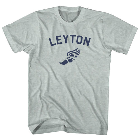 Product Story: Leyton Running Track Winged Foot Adult Tri-Blend T-shirtProduct Description: Leyton Running Track Winged Foot Adult Tri-Blend T-shirt Tri-Blend (Polyester, Rayon, Cotton) Buttery Smooth Soft Material Medium Weight Tee Soft Hand Print