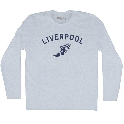 Product Story: Liverpool Running Track Winged Foot-Adult Tri-Blend Long Sleeve T-shirtProduct Description:Liverpool Running Track Winged Foot-Adult Tri-Blend Long Sleeve T-shirt