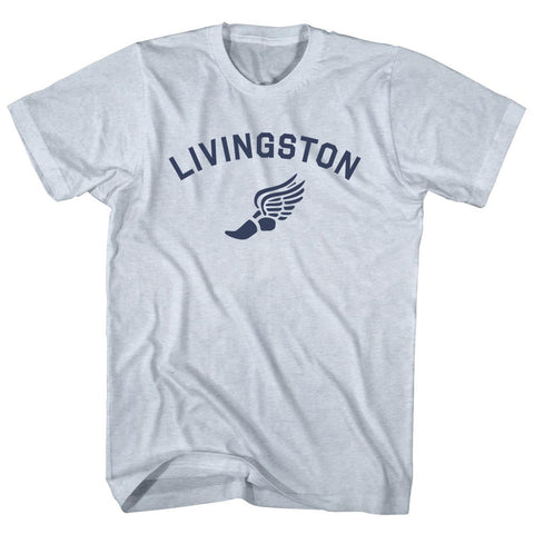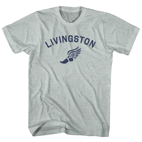 Product Story: Livingston Running Track Winged Foot Adult Tri-Blend T-shirtProduct Description: Livingston Running Track Winged Foot Adult Tri-Blend T-shirt Tri-Blend (Polyester, Rayon, Cotton) Buttery Smooth Soft Material Medium Weight Tee Soft Hand Print