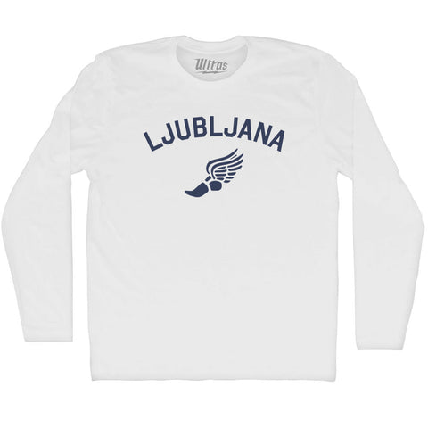 Product Story: Ljubljana Running Track Winged Foot Adult Cotton Long Sleeve T-shirtProduct Description: Ljubljana Running Track Winged Foot Adult Cotton Long Sleeve T-shirt Cotton (90% Cotton &10% Polyester) Buttery Smooth Soft Material Medium Weight Tee Soft Hand Print