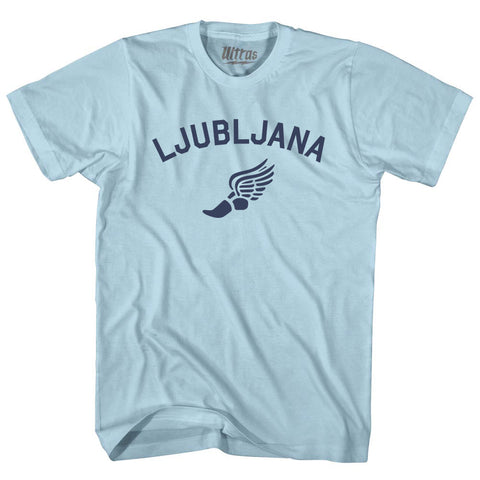 Product Story: Ljubljana Running Track Winged Foot Adult Cotton T-shirtProduct Description: Ljubljana Running Track Winged Foot Adult Cotton T-shirt Cotton Buttery Smooth Soft Material Medium Weight Tee Soft Hand Print