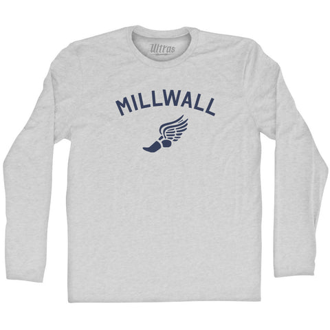 Product Story: Millwall Running Track Winged Foot-Adult Cotton Long Sleeve T-shirtProduct Description:Millwall Running Track Winged Foot-Adult Cotton Long Sleeve T-shirt