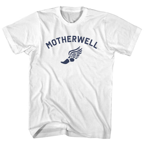 Product Story: Motherwell Running Track Winged Foot Womens Cotton Junior Cut T-ShirtProduct Description: Motherwell Running Track Winged Foot Womens Cotton Junior Cut T-Shirt Cotton Buttery Smooth Soft Material Medium Weight Tee Soft Hand Print