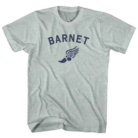 Product Story: Barnet Running Track Winged Foot Adult Tri-Blend T-shirtProduct Description: Barnet Running Track Winged Foot Adult Tri-Blend T-shirt Tri-Blend (Polyester, Rayon, Cotton) Buttery Smooth Soft Material Medium Weight Tee Soft Hand Print