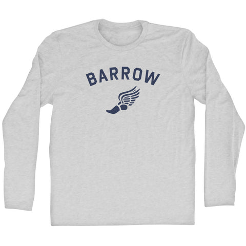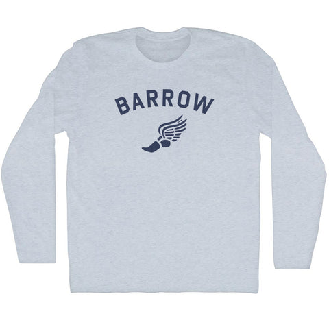 Product Story: Barrow Running Track Winged Foot Adult Tri-Blend Long Sleeve T-shirtProduct Description: Barrow Running Track Winged Foot Adult Tri-Blend Long Sleeve T-shirt Tri-Blend (Polyester, Rayon, Cotton) Buttery Smooth Soft Material Medium Weight Tee Soft Hand Print