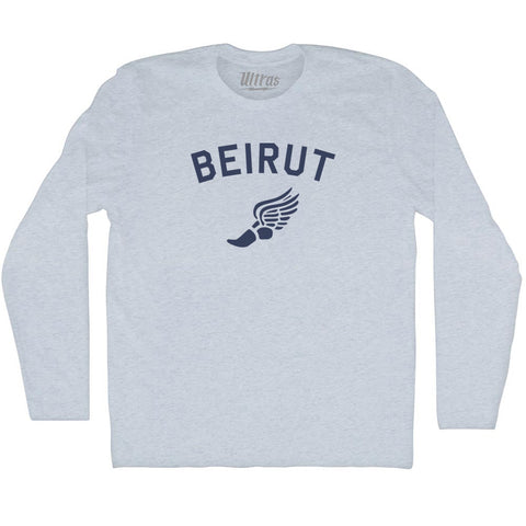 Product Story: Beirut Running Track Winged Foot Adult Cotton Long Sleeve T-shirtProduct Description: Beirut Running Track Winged Foot Adult Cotton Long Sleeve T-shirt Cotton (90% Cotton &10% Polyester) Buttery Smooth Soft Material Medium Weight Tee Soft Hand Print