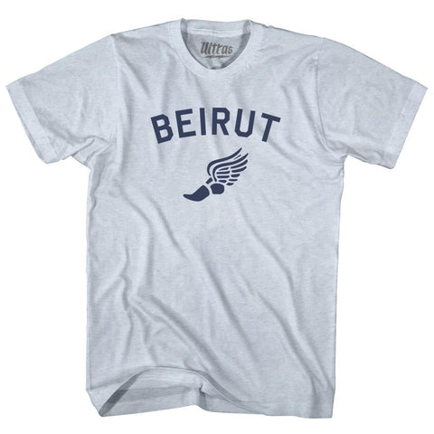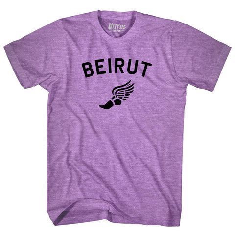 Product Story: Beirut Running Track Winged Foot Adult Tri-Blend T-shirtProduct Description: Beirut Running Track Winged Foot Adult Tri-Blend T-shirt Tri-Blend (Polyester, Rayon, Cotton) Buttery Smooth Soft Material Medium Weight Tee Soft Hand Print