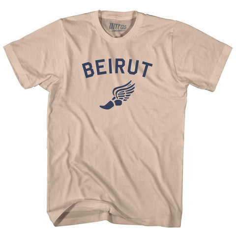 Product Story: Beirut Running Track Winged Foot Adult Cotton T-shirtProduct Description: Beirut Running Track Winged Foot Adult Cotton T-shirt Cotton Buttery Smooth Soft Material Medium Weight Tee Soft Hand Print