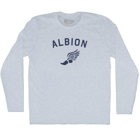 Product Story: Albion Running Track Winged Foot-Adult Tri-Blend Long Sleeve T-shirtProduct Description:Albion Running Track Winged Foot-Adult Tri-Blend Long Sleeve T-shirt