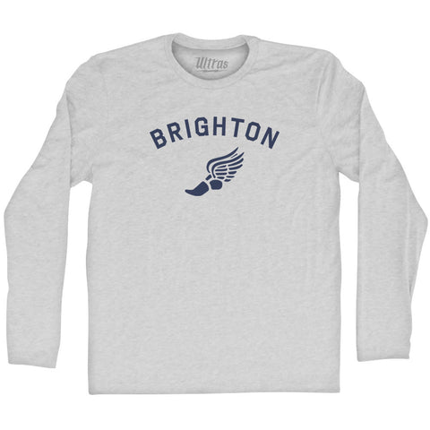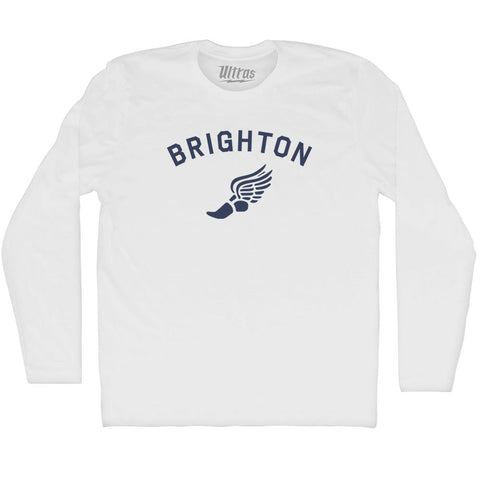 Product Story: Brighton Running Track Winged Foot Adult Cotton Long Sleeve T-shirtProduct Description: Brighton Running Track Winged Foot Adult Cotton Long Sleeve T-shirt Cotton Buttery Smooth Soft Material Medium Weight Tee Soft Hand Print