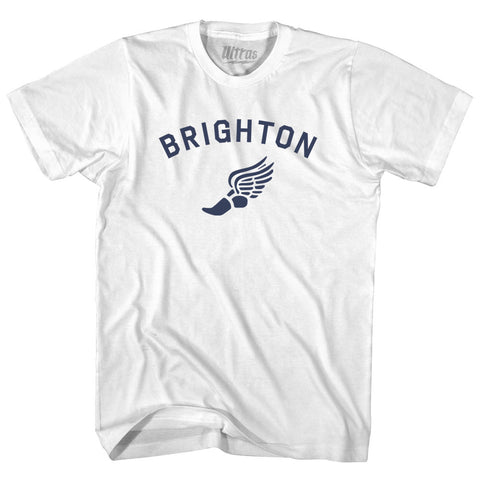 Product Story: Brighton Running Track Winged Foot Adult Cotton T-shirtProduct Description: Brighton Running Track Winged Foot Adult Cotton T-shirt Cotton (90% Cotton &10% Polyester) Buttery Smooth Soft Material Medium Weight Tee Soft Hand Print