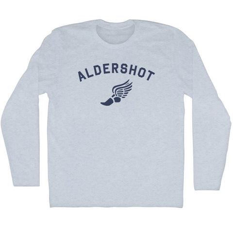 Product Story: Aldershot Running Track Winged Foot Adult Tri-Blend Long Sleeve T-shirtProduct Description: Aldershot Running Track Winged Foot Adult Tri-Blend Long Sleeve T-shirt Tri-Blend (Polyester, Rayon, Cotton) Buttery Smooth Soft Material Medium Weight Tee Soft Hand Print