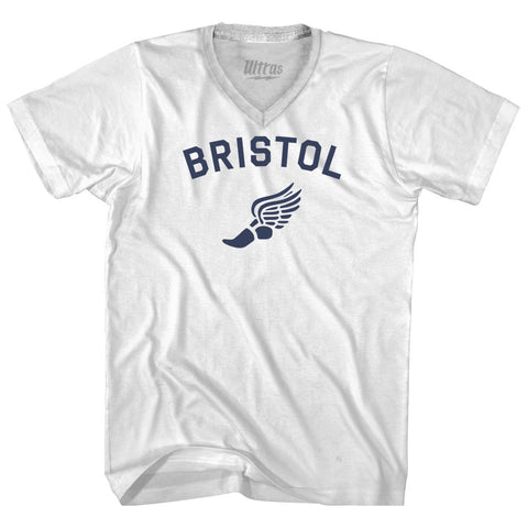 Product Story: Bristol Running Track Winged Foot-Adult Cotton V-neck T-shirtProduct Description:Bristol Running Track Winged Foot-Adult Cotton V-neck T-shirt