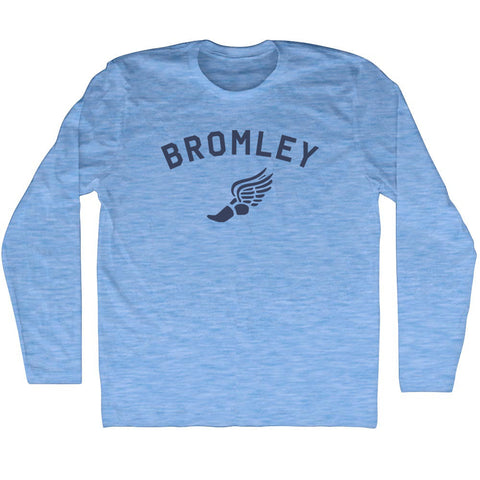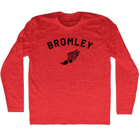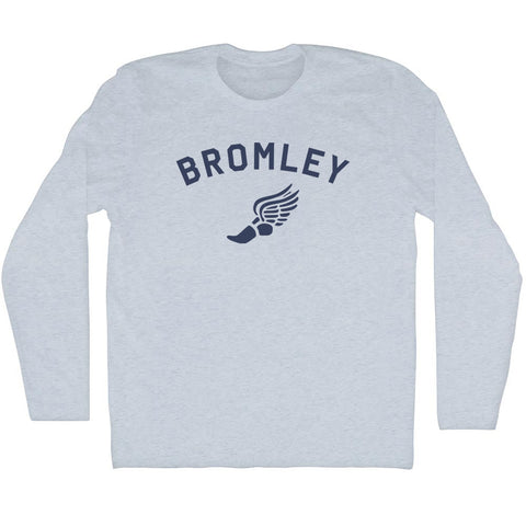 Product Story: Bromley Running Track Winged Foot Adult Tri-Blend Long Sleeve T-shirtProduct Description: Bromley Running Track Winged Foot Adult Tri-Blend Long Sleeve T-shirt Tri-Blend (Polyester, Rayon, Cotton) Buttery Smooth Soft Material Medium Weight Tee Soft Hand Print