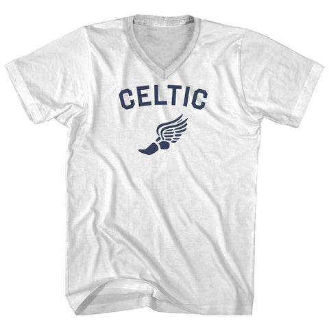 Product Story: Celtic Running Track Winged Foot Tri-Blend V-neck Womens Junior Cut T-shirtProduct Description: Celtic Running Track Winged Foot Tri-Blend V-neck Womens Junior Cut T-shirt Tri-Blend (Polyester, Rayon, Cotton) Buttery Smooth Soft Material Medium Weight Tee Soft Hand Print