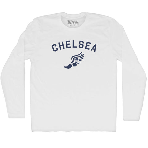 Product Story: Chelsea Running Track Winged Foot-Adult Cotton Long Sleeve T-shirtProduct Description:Chelsea Running Track Winged Foot-Adult Cotton Long Sleeve T-shirt