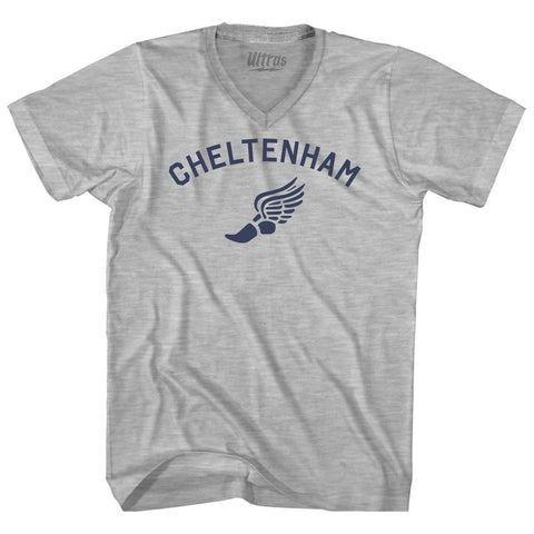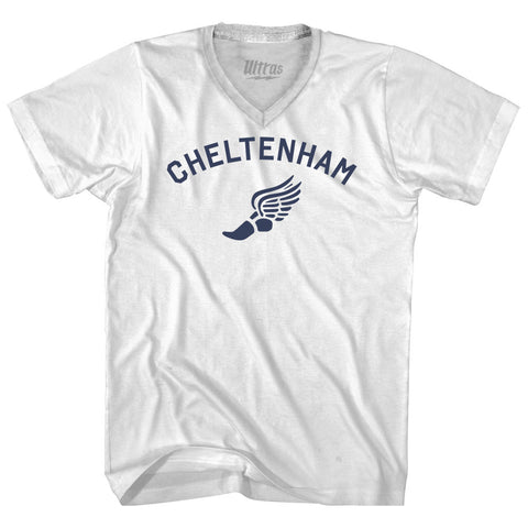 Product Story: Cheltenham Running Track Winged Foot-Adult Cotton V-neck T-shirtProduct Description:Cheltenham Running Track Winged Foot-Adult Cotton V-neck T-shirt