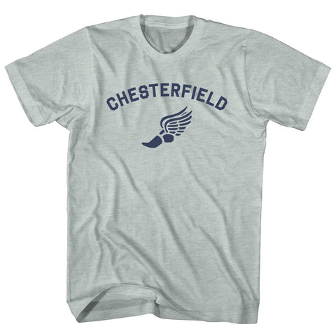 Product Story: Chesterfield Running Track Winged Foot Adult Tri-Blend T-shirtProduct Description: Chesterfield Running Track Winged Foot Adult Tri-Blend T-shirt Tri-Blend (Polyester, Rayon, Cotton) Buttery Smooth Soft Material Medium Weight Tee Soft Hand Print