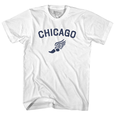 Product Story: Chicago Running Track Winged Foot Adult Cotton T-shirtProduct Description: Chicago Running Track Winged Foot Adult Cotton T-shirt Cotton (90% Cotton &10% Polyester) Buttery Smooth Soft Material Medium Weight Tee Soft Hand Print