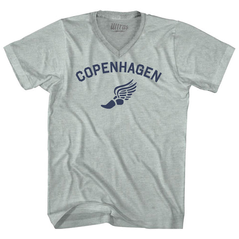 Product Story: Copenhagen Running Track Winged Foot Adult Tri-Blend V-neck T-shirtProduct Description: Copenhagen Running Track Winged Foot Adult Tri-Blend V-neck T-shirt Tri-Blend (Polyester, Rayon, Cotton) Buttery Smooth Soft Material Medium Weight Tee Soft Hand Print