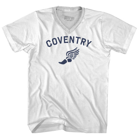 Product Story: Coventry Running Track Winged Foot-Adult Cotton V-neck T-shirtProduct Description:Coventry Running Track Winged Foot-Adult Cotton V-neck T-shirt