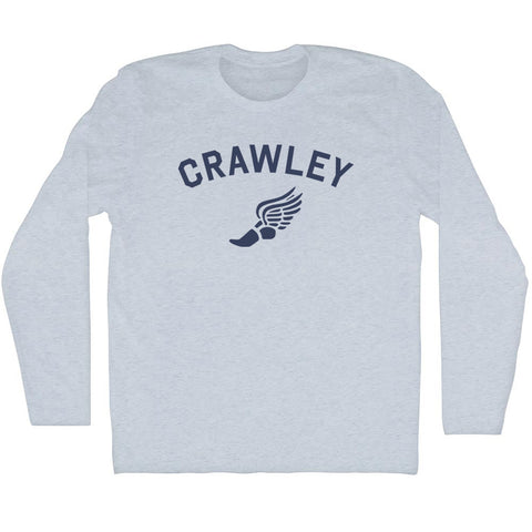 Product Story: Crawley Running Track Winged Foot Adult Tri-Blend Long Sleeve T-shirtProduct Description: Crawley Running Track Winged Foot Adult Tri-Blend Long Sleeve T-shirt Tri-Blend (Polyester, Rayon, Cotton) Buttery Smooth Soft Material Medium Weight Tee Soft Hand Print