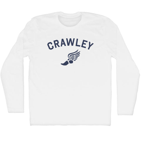 Product Story: Crawley Running Track Winged Foot Adult Cotton Long Sleeve T-shirtProduct Description: Crawley Running Track Winged Foot Adult Cotton Long Sleeve T-shirt Cotton Buttery Smooth Soft Material Medium Weight Tee Soft Hand Print