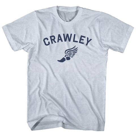 Product Story: Crawley Running Track Winged Foot Adult Cotton T-shirtProduct Description: Crawley Running Track Winged Foot Adult Cotton T-shirt Cotton (90% Cotton &10% Polyester) Buttery Smooth Soft Material Medium Weight Tee Soft Hand Print