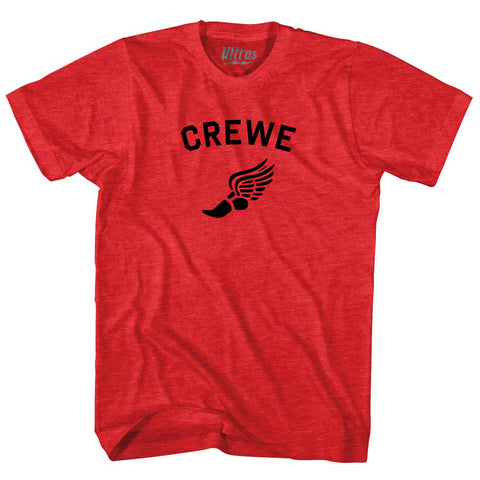 Product Story: Crewe Running Track Winged Foot-Adult Tri-Blend T-shirtProduct Description:Crewe Running Track Winged Foot-Adult Tri-Blend T-shirt