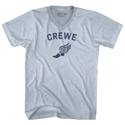 Product Story: Crewe Running Track Winged Foot-Adult Tri-Blend V-neck T-shirtProduct Description:Crewe Running Track Winged Foot-Adult Tri-Blend V-neck T-shirt