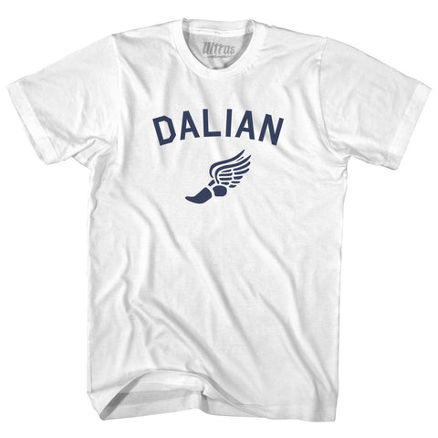 Product Story: Dalian Running Track Winged Foot Youth Cotton T-shirtProduct Description: Dalian Running Track Winged Foot Youth Cotton T-shirt Cotton (90% Cotton &10% Polyester) Buttery Smooth Soft Material Medium Weight Tee Soft Hand Print