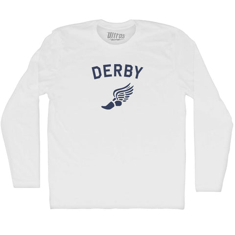 Product Story: Derby Running Track Winged Foot-Adult Cotton Long Sleeve T-shirtProduct Description:Derby Running Track Winged Foot-Adult Cotton Long Sleeve T-shirt