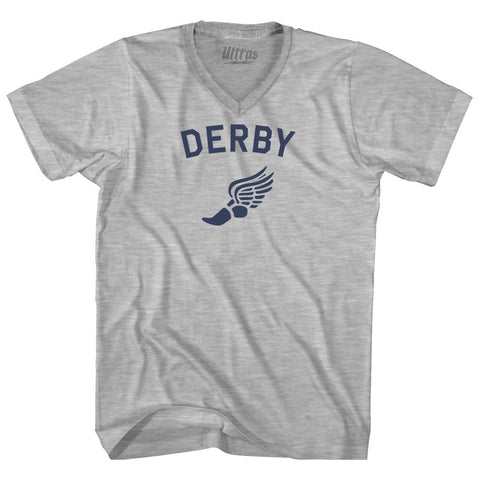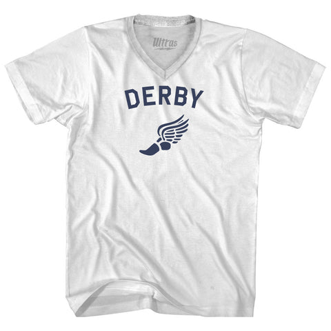 Product Story: Derby Running Track Winged Foot-Adult Cotton V-neck T-shirtProduct Description:Derby Running Track Winged Foot-Adult Cotton V-neck T-shirt