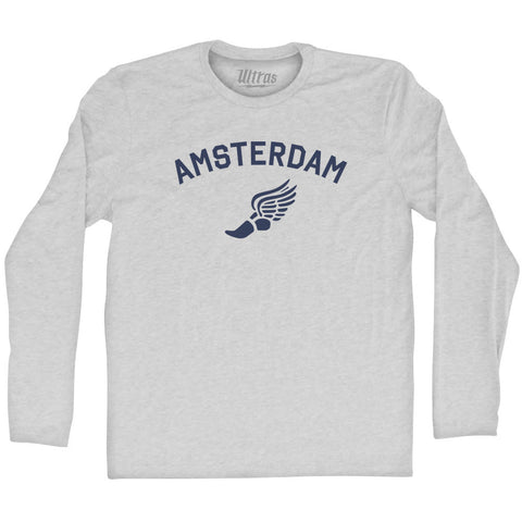 Product Story: Amsterdam Running Track Winged Foot Adult Cotton Long Sleeve T-shirtProduct Description: Amsterdam Running Track Winged Foot Adult Cotton Long Sleeve T-shirt Cotton (90% Cotton &10% Polyester) Buttery Smooth Soft Material Medium Weight Tee Soft Hand Print