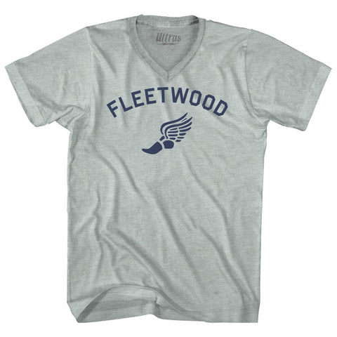 Product Story: Fleetwood Running Track Winged Foot-Adult Tri-Blend V-neck T-shirtProduct Description:Fleetwood Running Track Winged Foot-Adult Tri-Blend V-neck T-shirt