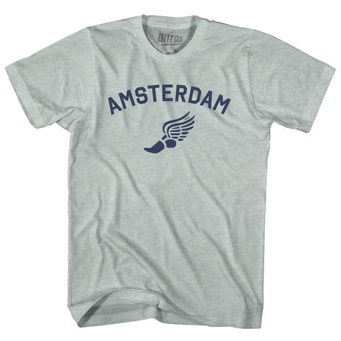 Product Story: Amsterdam Running Track Winged Foot Adult Tri-Blend T-shirtProduct Description: Amsterdam Running Track Winged Foot Adult Tri-Blend T-shirt Tri-Blend (Polyester, Rayon, Cotton) Buttery Smooth Soft Material Medium Weight Tee Soft Hand Print