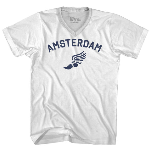 Product Story: Amsterdam Running Track Winged Foot Adult Tri-Blend V-neck T-shirtProduct Description: Amsterdam Running Track Winged Foot Adult Tri-Blend V-neck T-shirt Tri-Blend (Polyester, Rayon, Cotton) Buttery Smooth Soft Material Medium Weight Tee Soft Hand Print