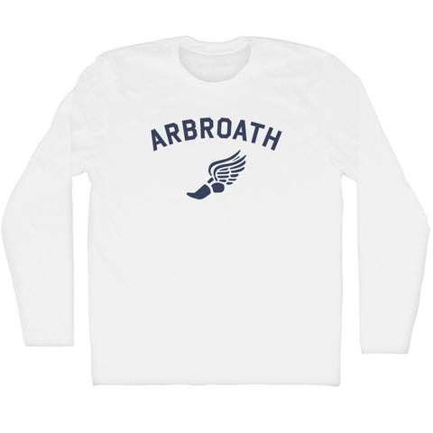 Product Story: Arbroath Running Track Winged Foot Adult Cotton Long Sleeve T-shirtProduct Description: Arbroath Running Track Winged Foot Adult Cotton Long Sleeve T-shirt Cotton Buttery Smooth Soft Material Medium Weight Tee Soft Hand Print