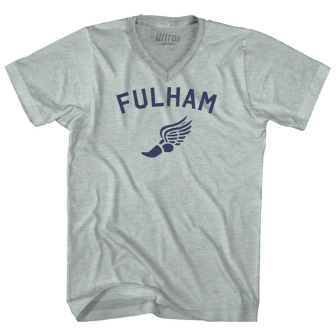 Product Story: Fulham Running Track Winged Foot-Adult Tri-Blend V-neck T-shirtProduct Description:Fulham Running Track Winged Foot-Adult Tri-Blend V-neck T-shirt