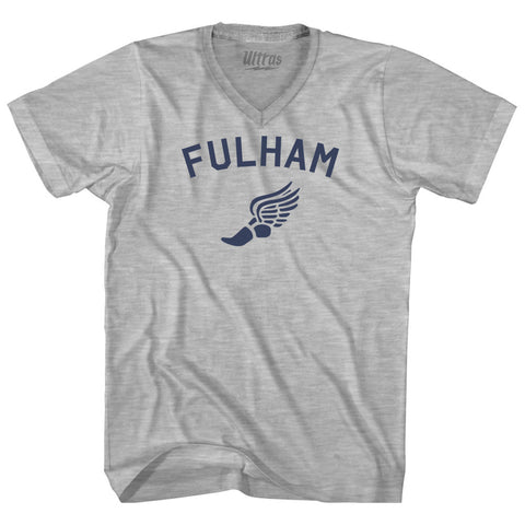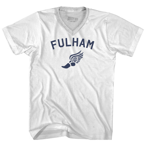 Product Story: Fulham Running Track Winged Foot-Adult Cotton V-neck T-shirtProduct Description:Fulham Running Track Winged Foot-Adult Cotton V-neck T-shirt