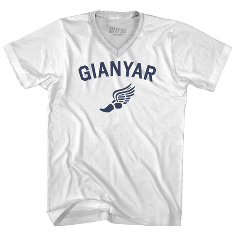 Product Story: Gianyar Running Track Winged Foot Adult Tri-Blend V-neck T-shirtProduct Description: Gianyar Running Track Winged Foot Adult Tri-Blend V-neck T-shirt Tri-Blend (Polyester, Rayon, Cotton) Buttery Smooth Soft Material Medium Weight Tee Soft Hand Print