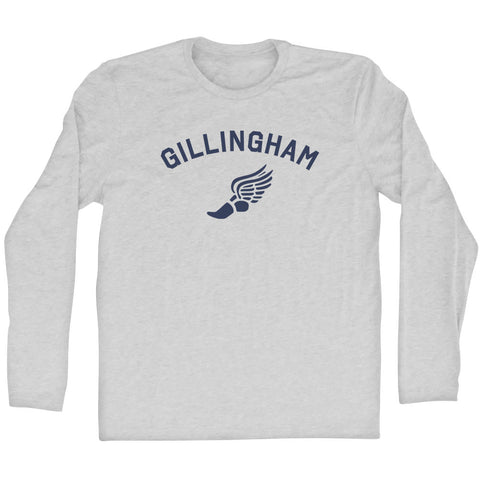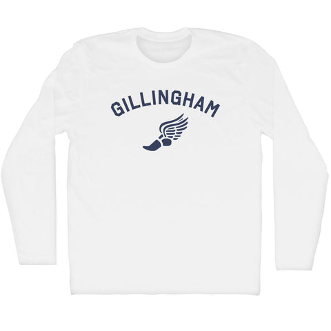 Product Story: Gillingham Running Track Winged Foot Adult Cotton Long Sleeve T-shirtProduct Description: Gillingham Running Track Winged Foot Adult Cotton Long Sleeve T-shirt Cotton (90% Cotton &10% Polyester) Buttery Smooth Soft Material Medium Weight Tee Soft Hand Print