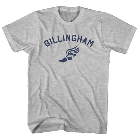 Product Story: Gillingham Running Track Winged Foot Adult Cotton T-shirtProduct Description: Gillingham Running Track Winged Foot Adult Cotton T-shirt Cotton (90% Cotton &10% Polyester) Buttery Smooth Soft Material Medium Weight Tee Soft Hand Print
