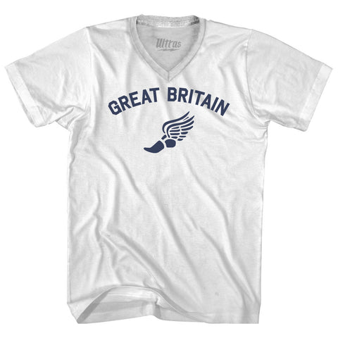 Product Story: Great Britain Track Running Winged Foot Adult Cotton V-neck T-shirtProduct Description: Great Britain Track Running Winged Foot Adult Cotton V-neck T-shirt Cotton Buttery Smooth Soft Material Medium Weight Tee Soft Hand Print