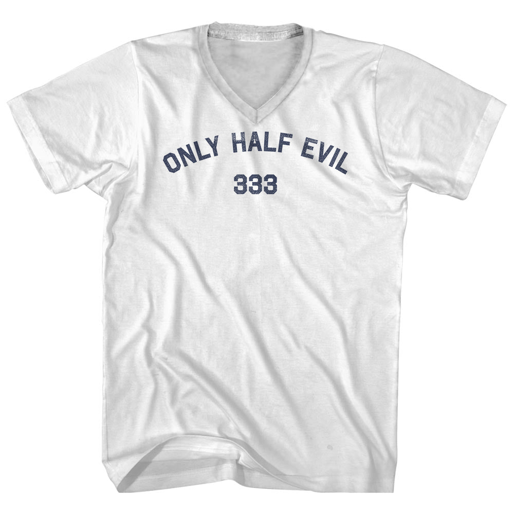 Only Half Evil 333 Adult Cotton V-neck T-shirt