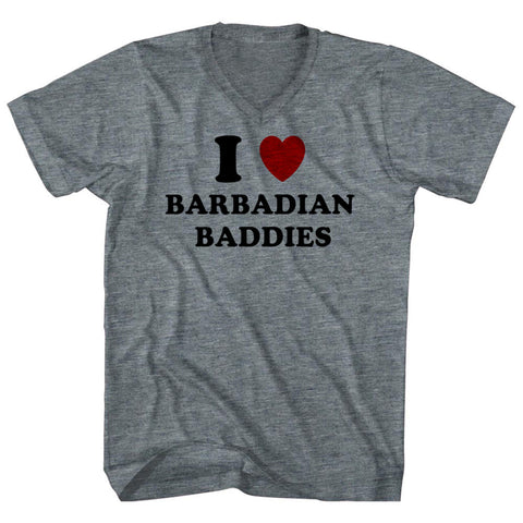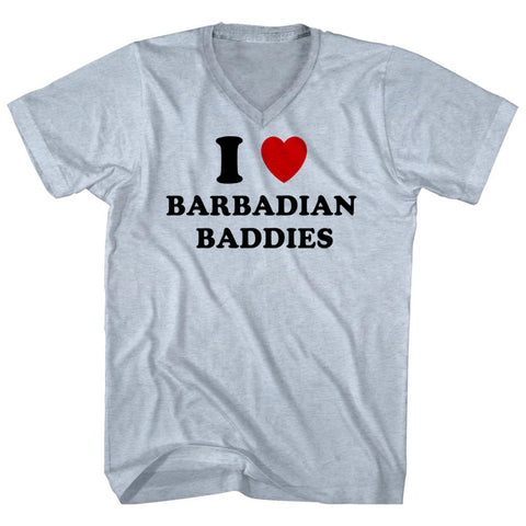 Product Story: I Heart Barbadian Baddies Adult Cotton V-neck T-shirtProduct Description: I Heart Barbadian Baddies Adult Cotton V-neck T-shirt Tri-Blend (Polyester, Rayon, Cotton) Buttery Smooth Soft Material Medium Weight Tee Soft Hand Print